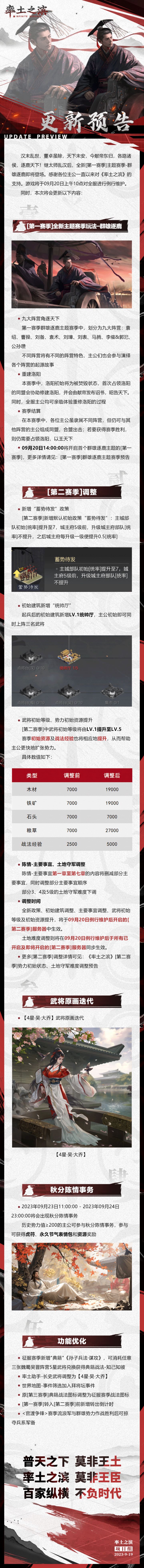 《率土之滨》09月20日例行更新预告