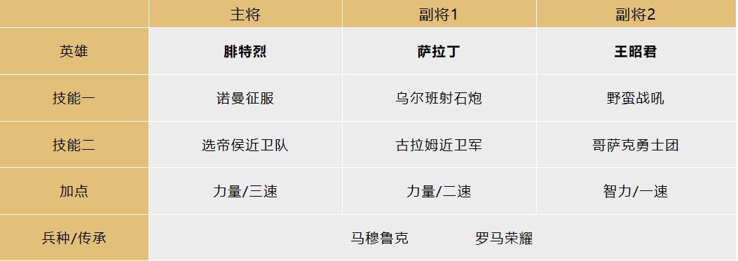 爆头突击队是在纯突的基础上,将辅助英雄更换为铁木真,搭配【楔型骑兵阵】使我军全体集火秒杀敌军兵力最低的英雄,从而达到爆头的效果,一旦技能命中主将,即可轻松取得胜利。