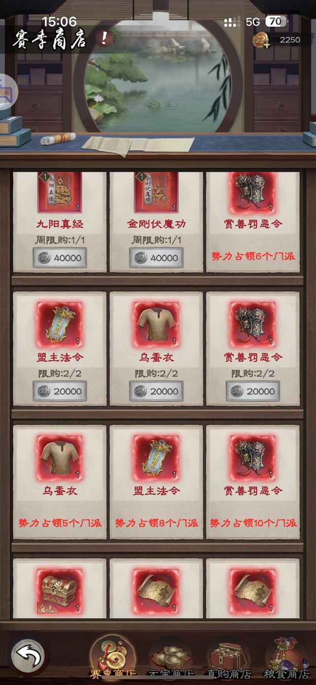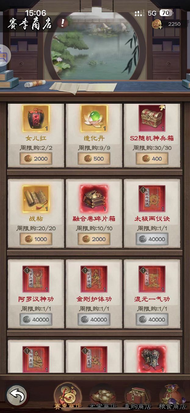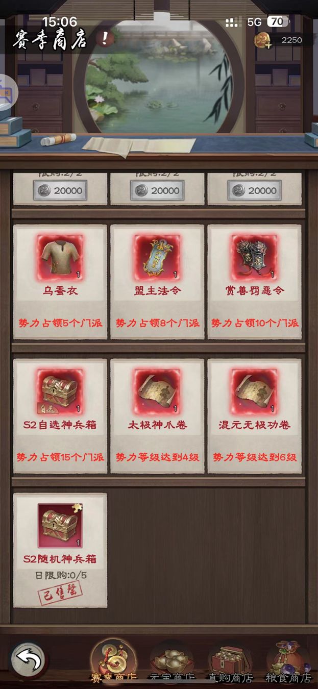 2.大家都比较关注的赛季商店,这里也放给大家看下,新赛季多了一个粮食商店,后面我会给大家讲一下粮食的获取。