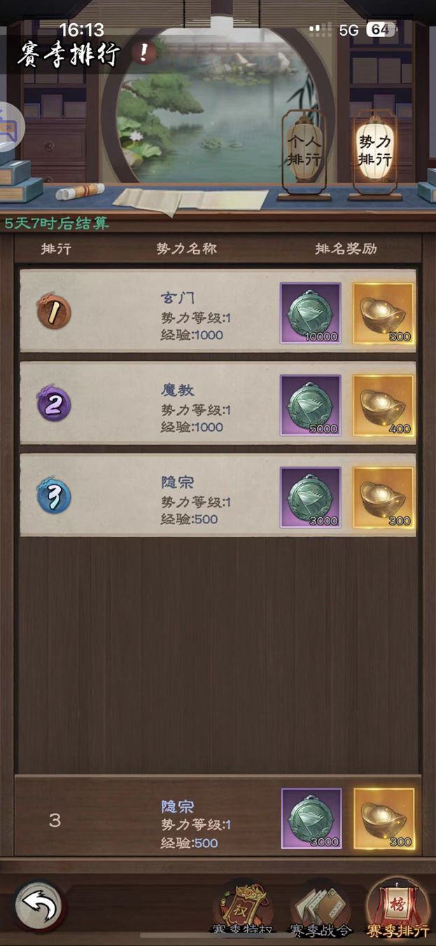 写在最后,S2赛季的更新,江湖不再是简简单单的挂机摆烂,也多了一些策略性的玩法值得大家研究发掘,人多的势力也可以抵制氪金大佬的无限制攻城略地。三足鼎立的局势,也让最后赛季争夺第一势力及个人排名奖励归属的结局变得更加扑朔迷离,而不像以前S1赛季的一眼就可以看到结局。可玩度更高了一些。