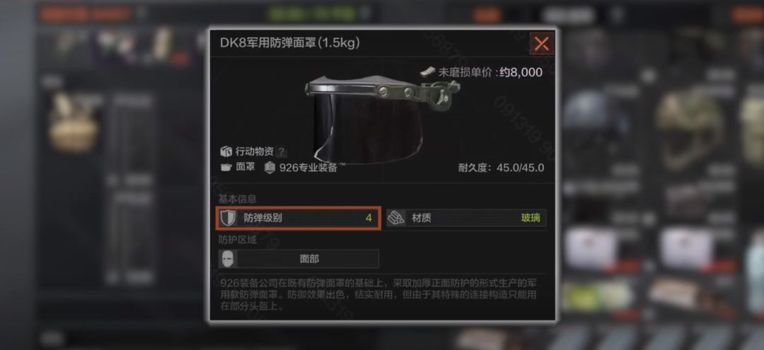 之前的大部分头盔只能兼容3级的面罩,新版本中新增了DK8军用防护面罩,防护等级4级,可以兼容KSS战术头盔、KSS2型头盔、03重型战术头盔等,但IND系列的低级头盔不兼容。