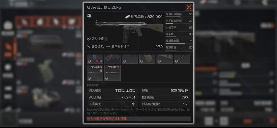 再来我们看看新增的武器,G3突击步枪与SG550突击步枪。G3突击步枪,科伦提供的势力物资,采用滚柱闭锁结构,使用7.62x51口径子弹,因高精度和高伤害闻名。