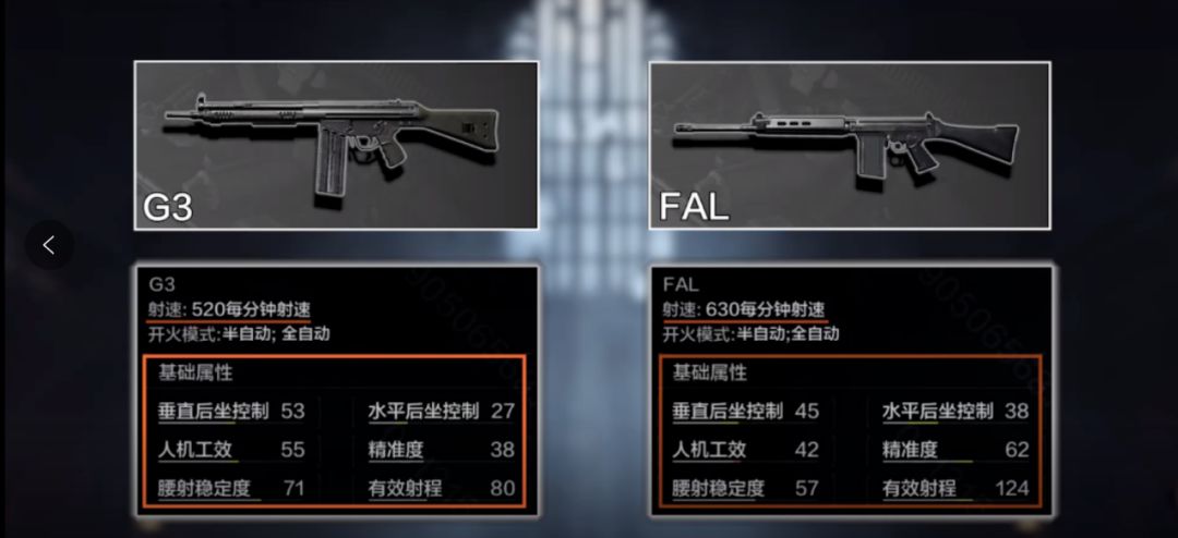 G3的基础属性较同样使用7.62x51口径子弹的FAL突击步枪略高,射速则略低,但操控性更好。