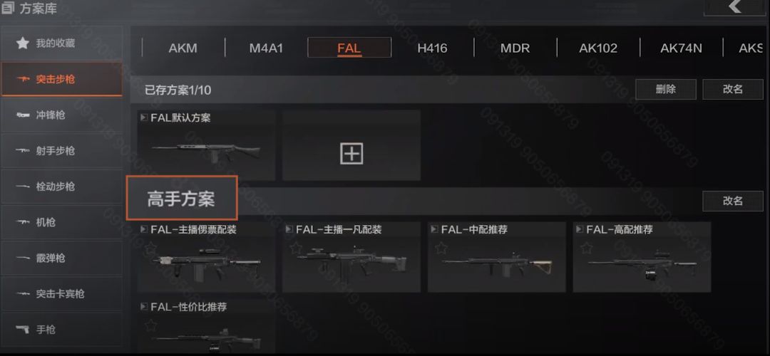 再点击屏幕左上角新增的【方案库】按钮,进入方案库,除了【我的收藏】之外,点击任意枪械分类,再选择具体的枪械型号,就可以看到具体的改枪方案了,下方的高手方案里会推介各个主播的配枪方案,点击保存之后可在自己的改枪页面中配置一件改装。