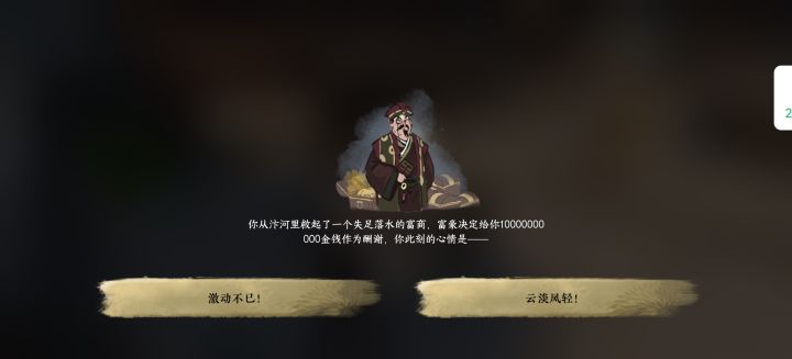 突然蹦出来的事件,一长串0直接看麻了,我选了第二个,他最后为啥没有给我钱!