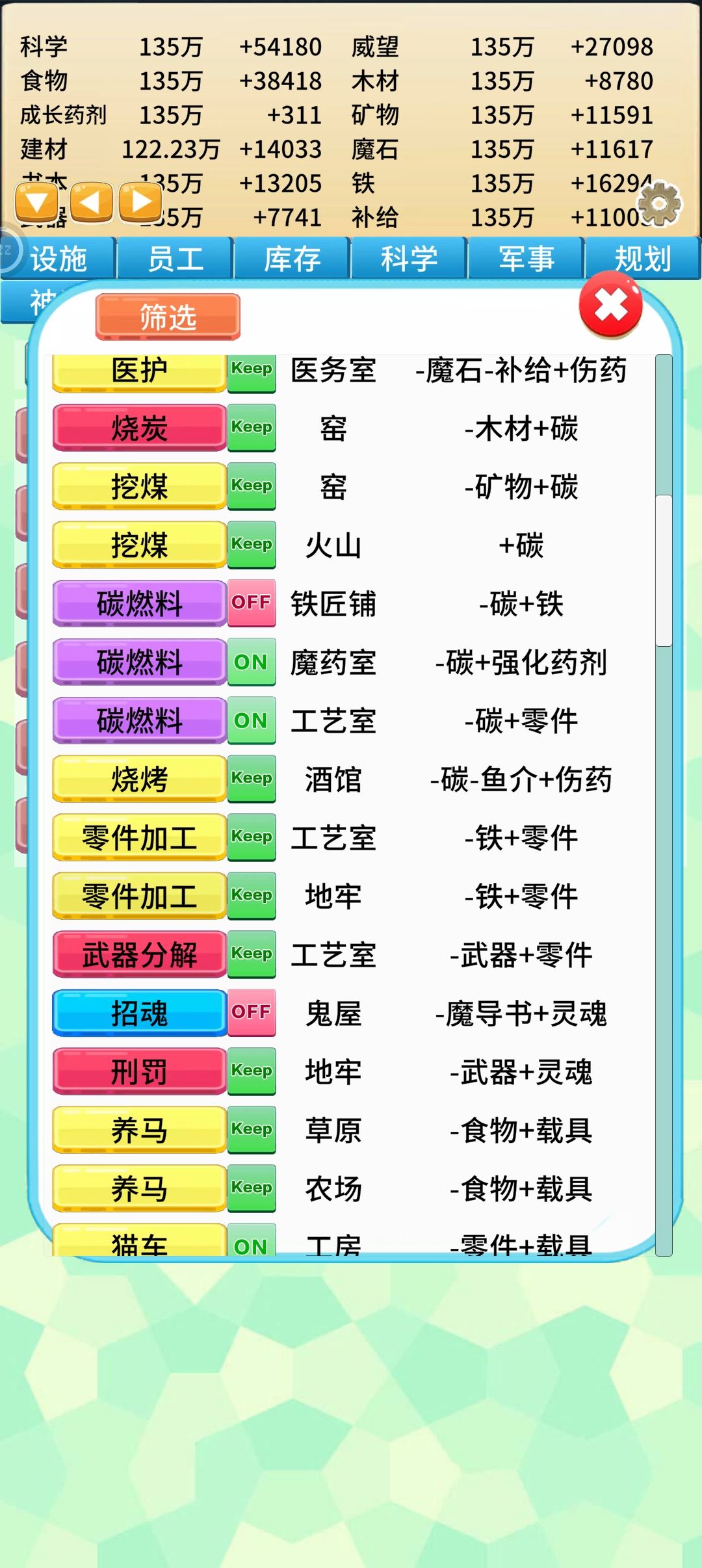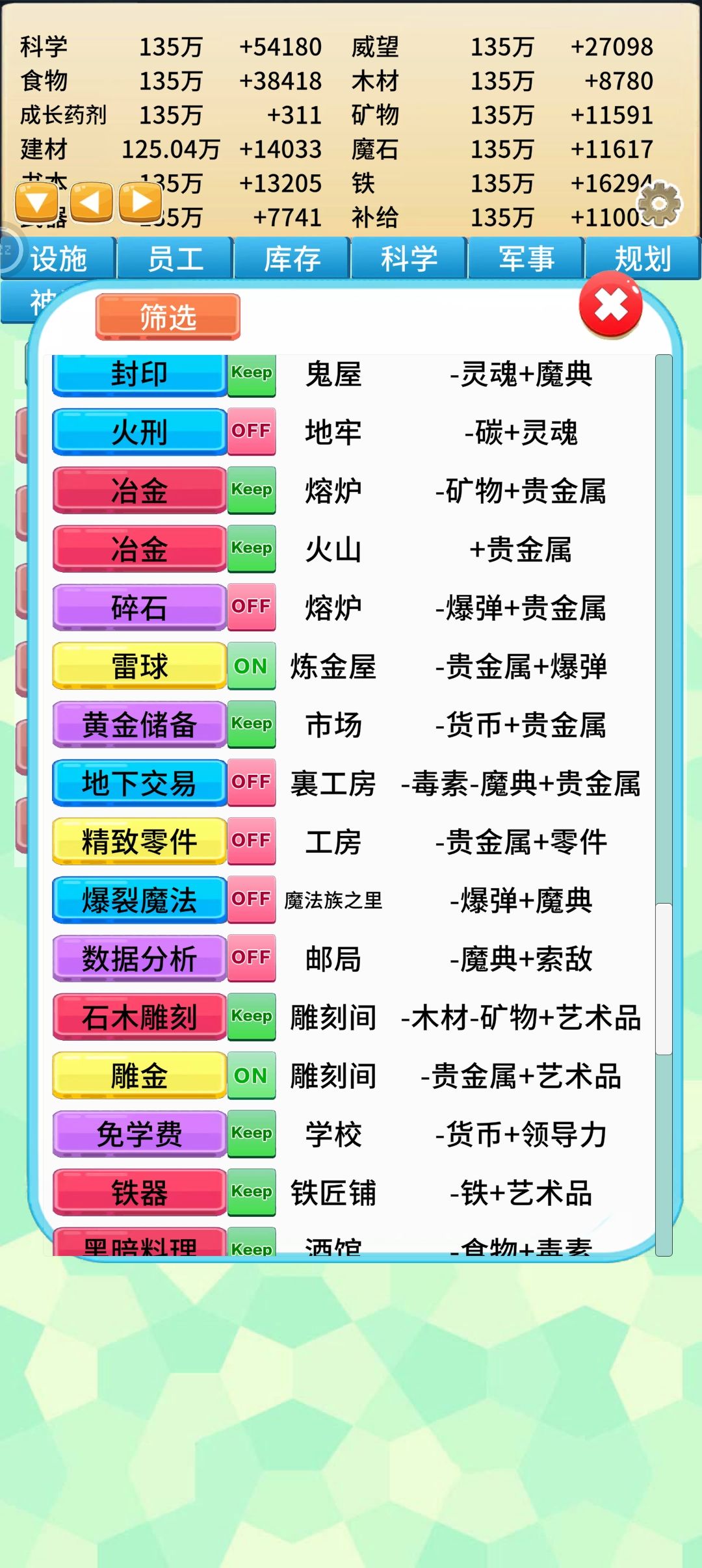 放不下了,能发在评论区里了,No或off是要自己抉择的,其他的应该是没错的,魔王城还是鸡哥,这次转生三段变身能升到6级(升了4级),下次应该非常快到后期,建议大家先升魔王属性(三段变身,等级试练,娴熟,等级,合同),药剂神器材料的增多是速通的最好方法,升完了就可以去升节约,长远规划,搜刮神器,魔王的野望升二级,三级50太拖时间,大统领优先培育力,搜寻力,成长力,预判力,再然后是操作力,属性和销售力后面慢慢升就好,神器也是优升去产药剂的那几个(智力高的),然后是稀有物资的产量(骑士纹章和墨丘利蛇杖优先),里程碑除了最后一个全开,最后不必强求,一般在23(前期)~27(现在)就转生吧,后面很拖时间,如果不是点一个技能差一点或者离下一点就几级就别拖了,员工升级看你需要什么升什么,应该是没别的了,以上就是我的见解