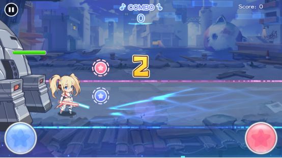 使用通行证进入区域开启音乐进行战斗,四种不同难度的区域掉落道具的基础数量不同,且战斗评分越高掉落的道具数量越多