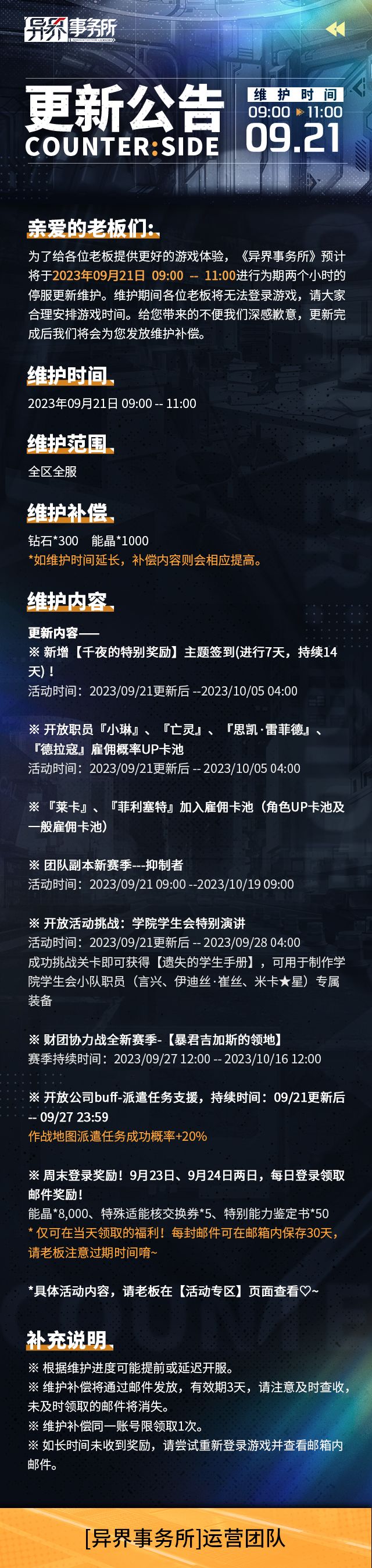 更新情报 | 小琳、亡灵、思凯·雷菲德、德拉蔻复刻,团队副本新赛季