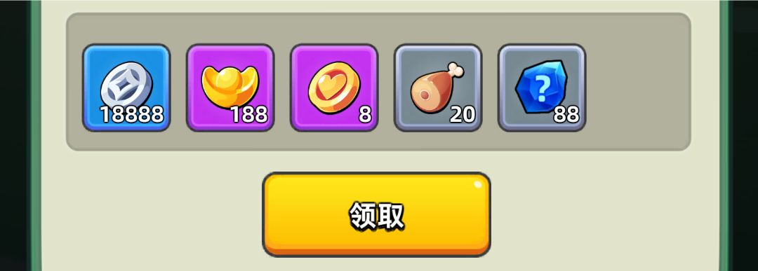 礼包内容:18888银币、188元宝、8个复活币、88随机强化石