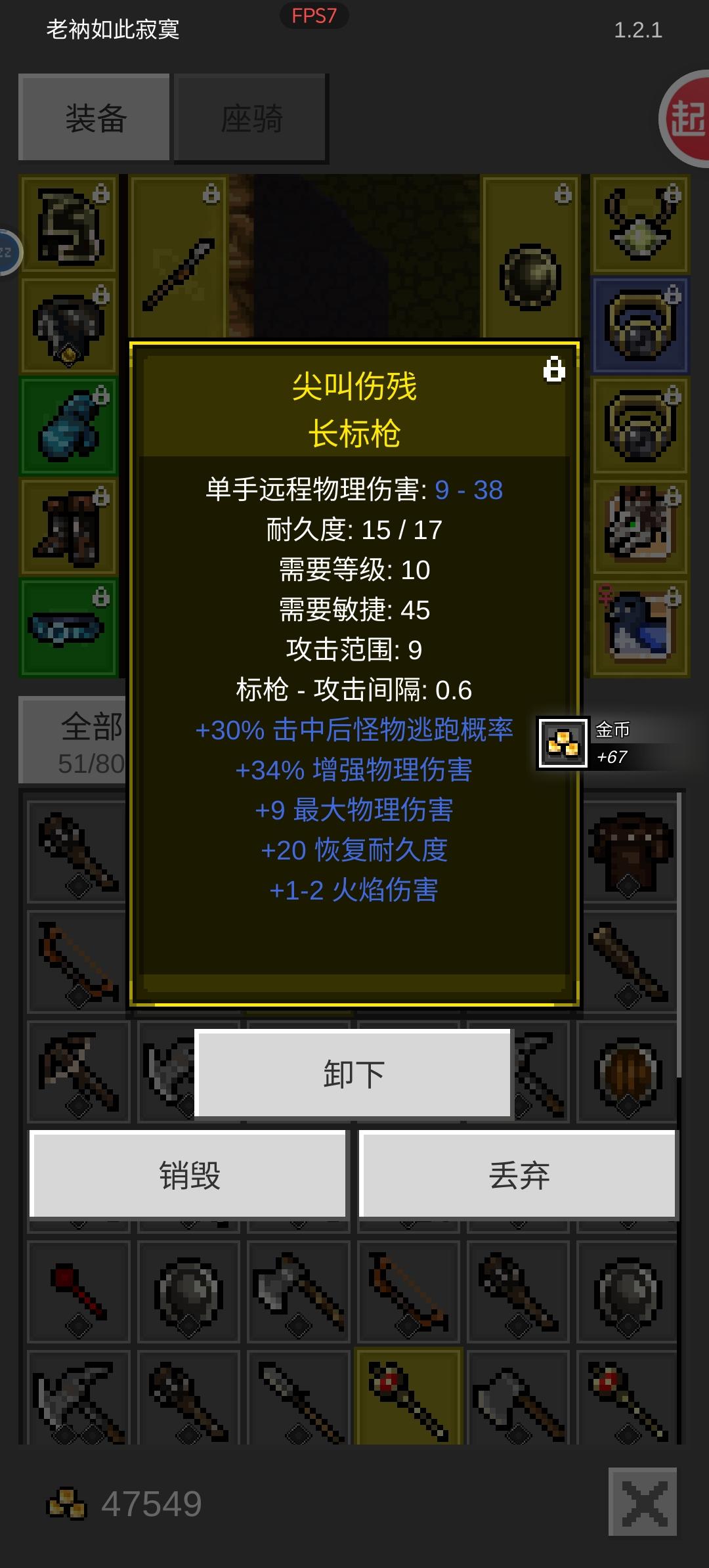 前面攒下来的一个标枪,可以通宵挂,弓的耐久下的太快了