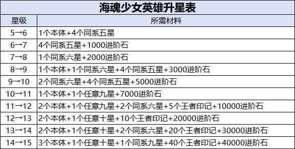 《英雄升星表》⭐