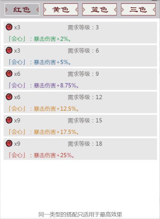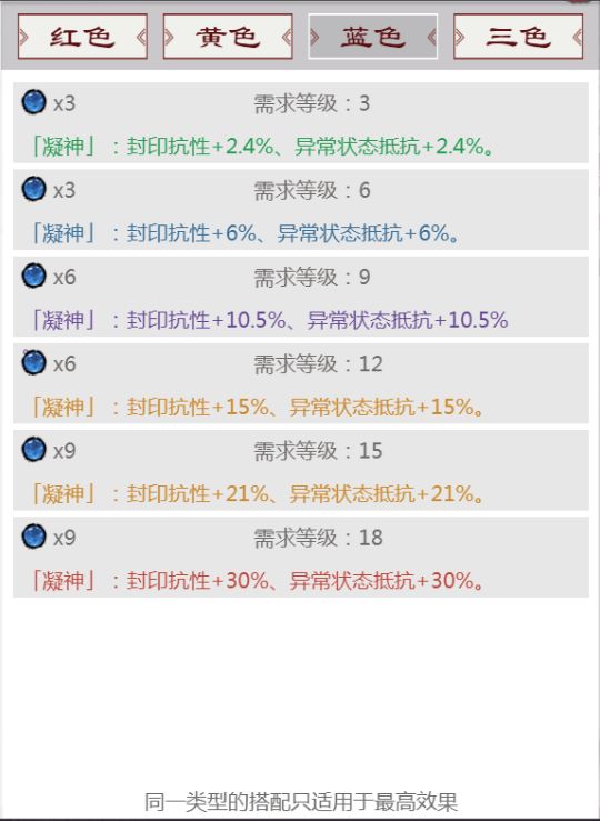2:组合搭配,即会心、强攻、凝神与三者合一的御敌。