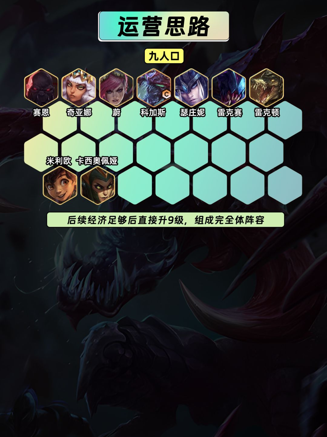 9⃣经济足够就可以升9级,组成完全体阵容