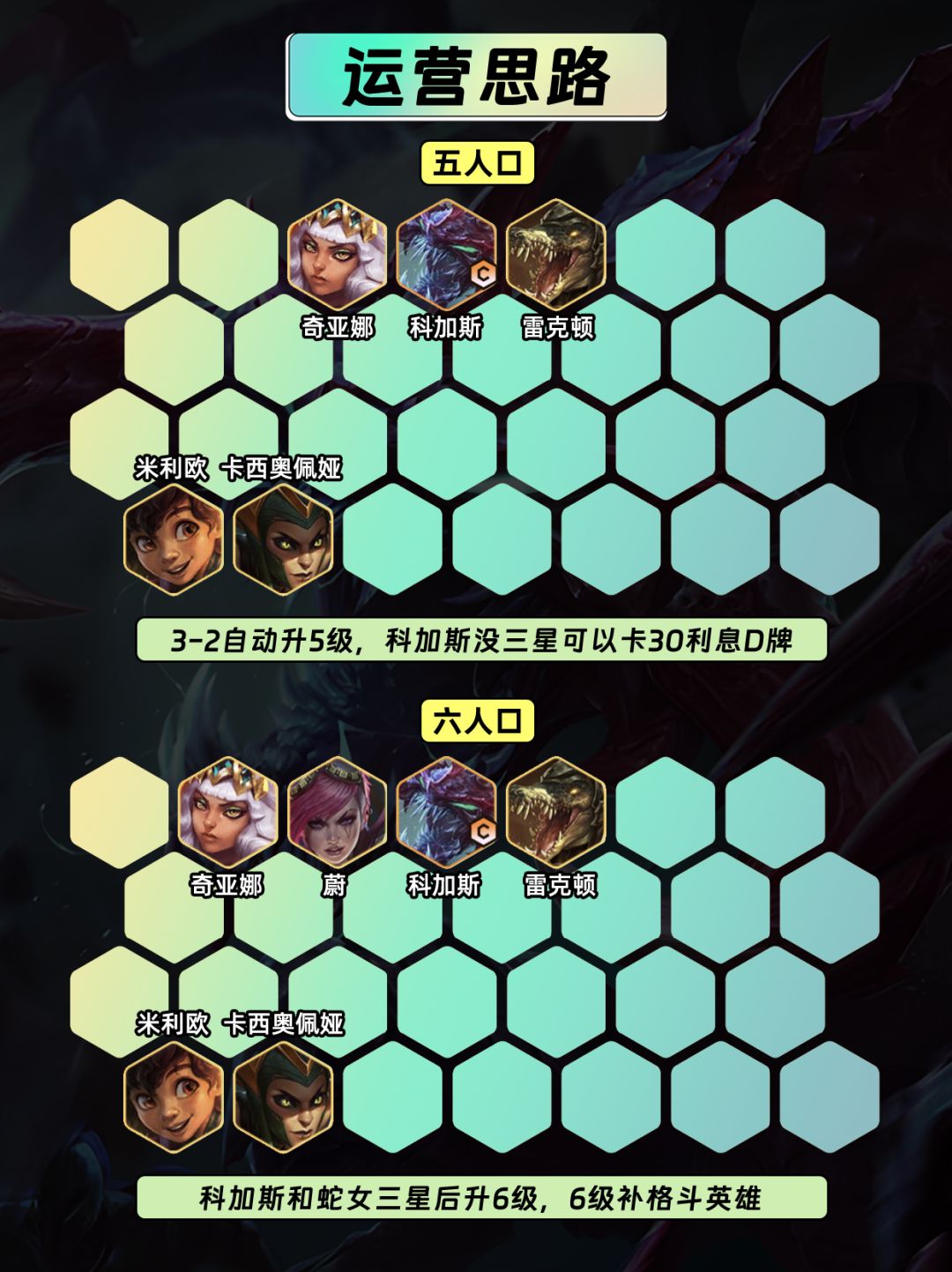 6⃣科加斯和蛇女三星后升6级,6级可以补蔚