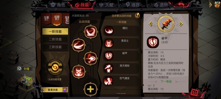 98级用一鼓作气,一阶:+5%暴击,赤红饥渴,三阶:暴走,以直报怨(前几层首选减15%魔伤/破领域/攻速)