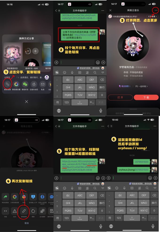 3. 网易云音乐跳转指令:orpheus://song/(安卓和苹果都需要用到)