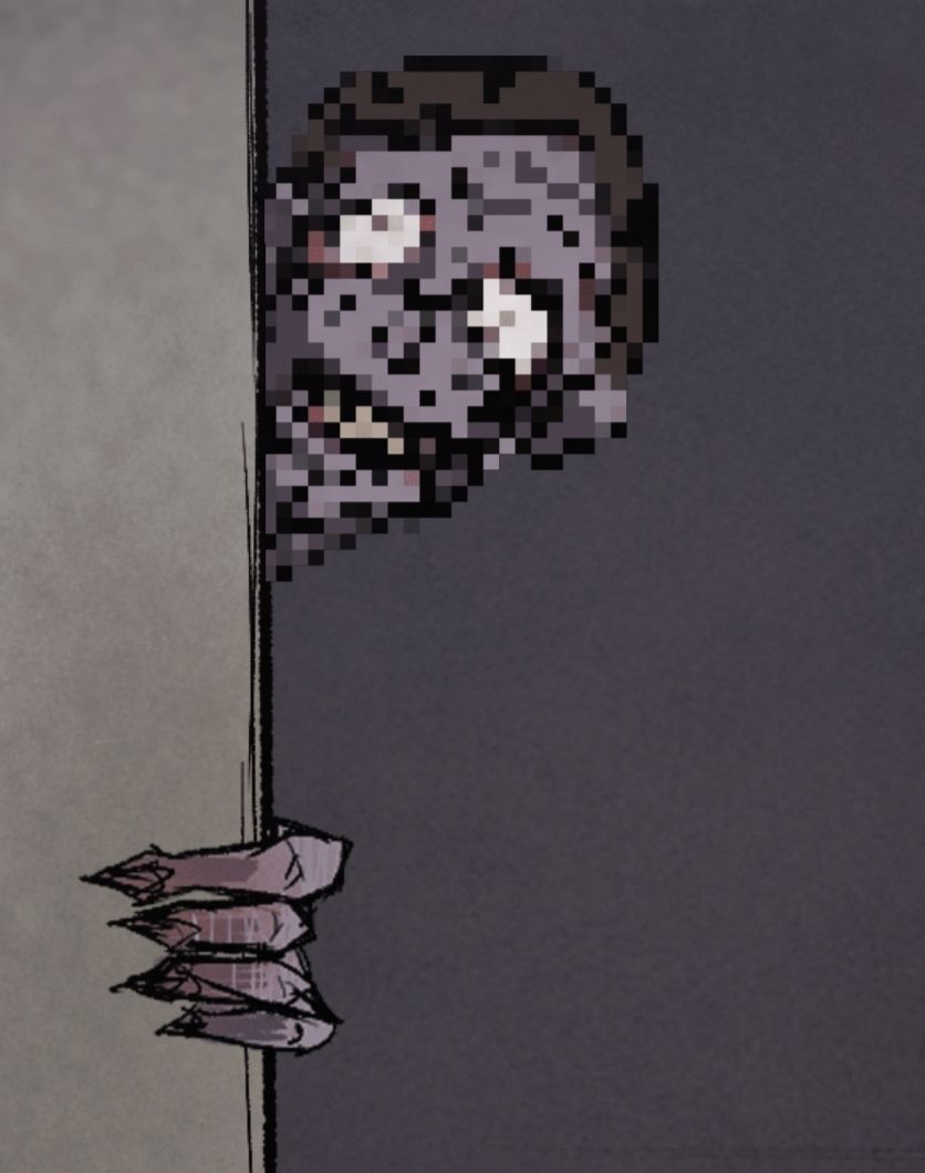 P6 想着早上出去碰碰运气,结果一开门一只手就从门边缓缓伸出,紧接着,一张面目全非没有人样的脸……