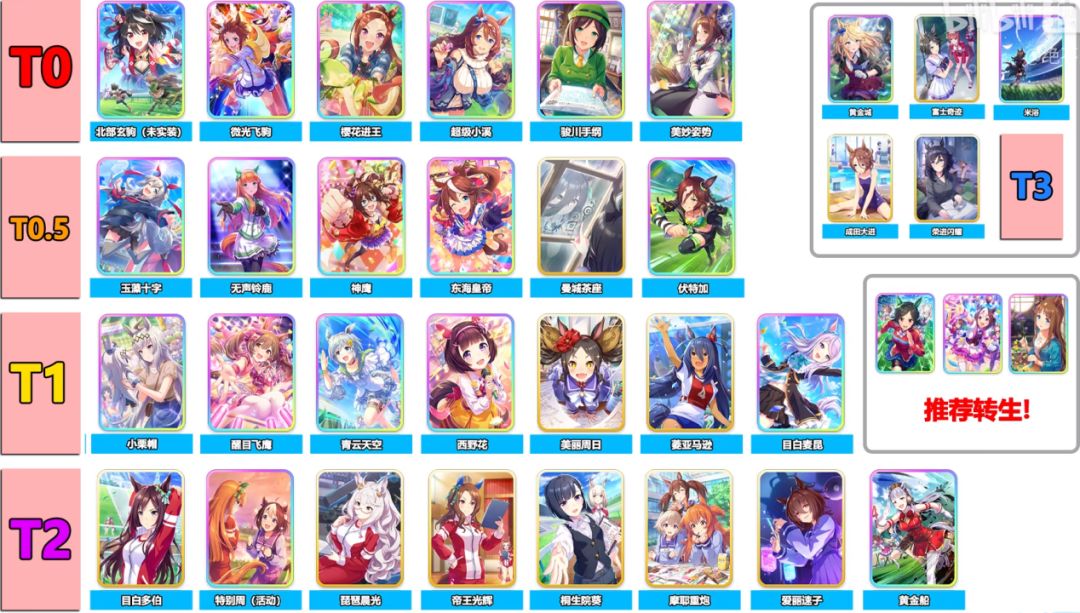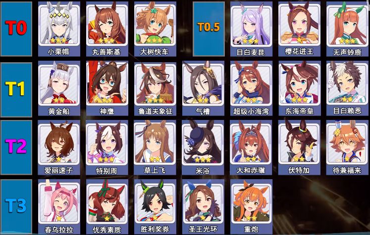 天梯图放下面,根据强度选或者根据喜好选其实都可以,赛马娘这个游戏和其他卡牌不太一样,马娘的星级重要性没那么高,只要花时间和精力,哪怕是强度一般的马也能培养成S马。