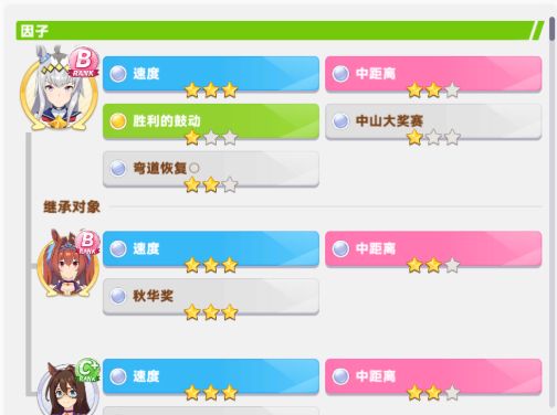 然后选择种马(可以理解为马娘的父母),选择相性高的和你需要的属性加成多的(如下图)