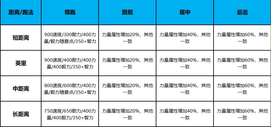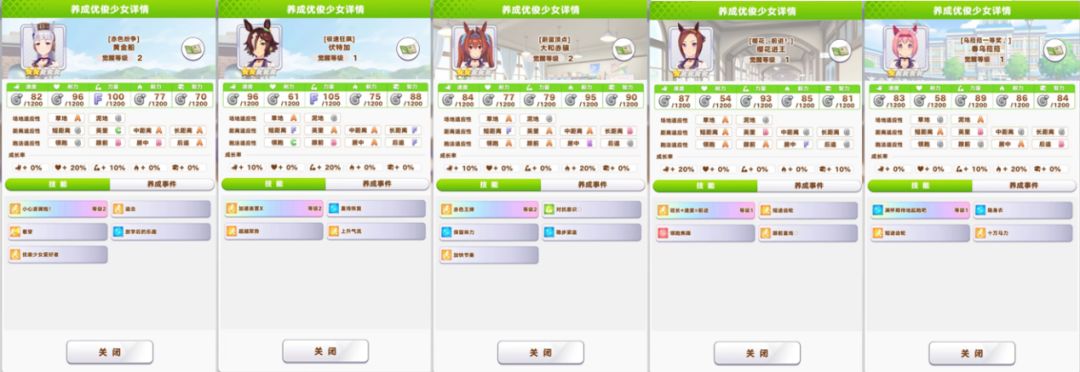 马娘的属性分为:速度、耐力、力量、毅力、智力。