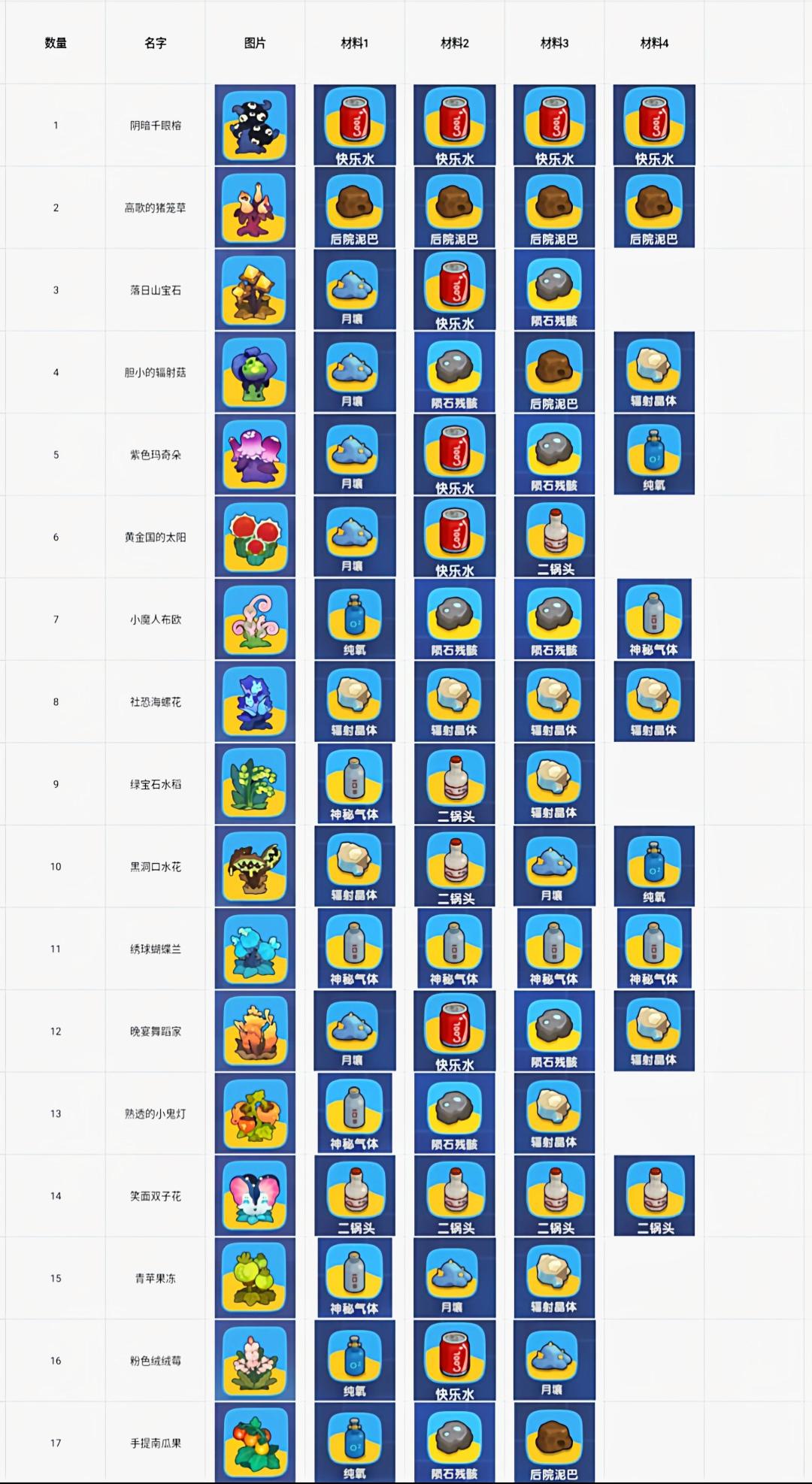 特别感谢群883580120的群友(源,深空星灵,昭昭)一起测试。噢,这里说一下,研究植物的时候,按4321种材料来研究,就是先研究4种材料,再到3,到2,到1,一种和两种材料的图谱几次不出来很正常,多研究几次就好了,还有测试服时不管什么种子变异,都没太大影响,明天开服再看看吧。