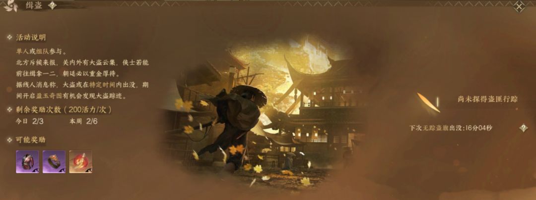 无常大盗:每日6个时间段出现,有不同难度的盗贼,难度越高,奖励越好。