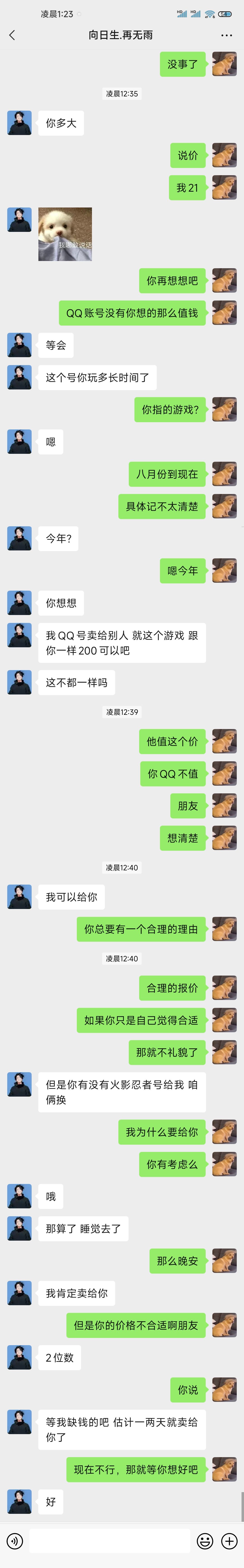 遇到个不要face的前号主,我跟号主都交易完了,人家号主都参军入伍了,这个前号主跳出来了,还想二次收费啊。号主跟前号主当初也是一锤子买卖,当时因为QQ死绑的原因,前号主依旧能登录,号主特意跟我讲过他当初还多给前号主发了钱口头答应不在登录这个游戏。结果呢,给我这儿坐地起价还文字游戏。