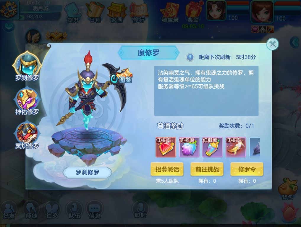 1)调整了魔修罗战斗难度并增加了奖励;