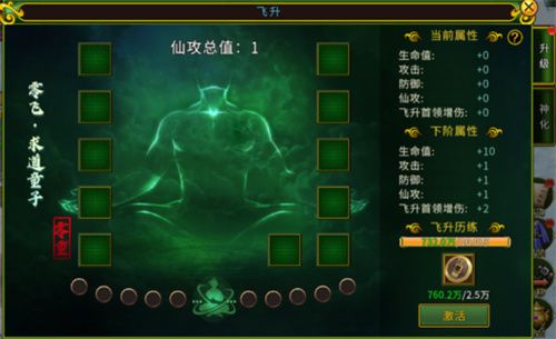 - 飞升等级:消耗飞升历练跟江湖币可提升飞升等级。