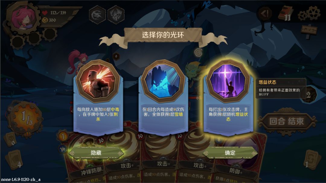 敌人出现后会自带一个特殊buff“消逝光芒”,效果是玩家在3回合内击杀该怪物会获得一次三选一的光环选择机会