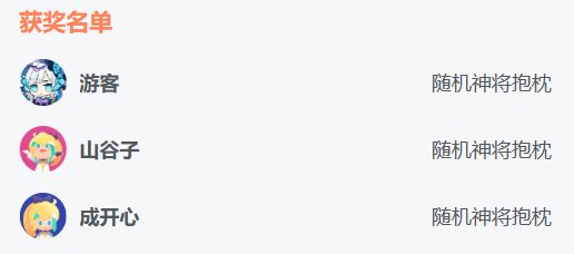 >>>恭喜以下三位天师大人获得🎁随机神将抱枕🎁