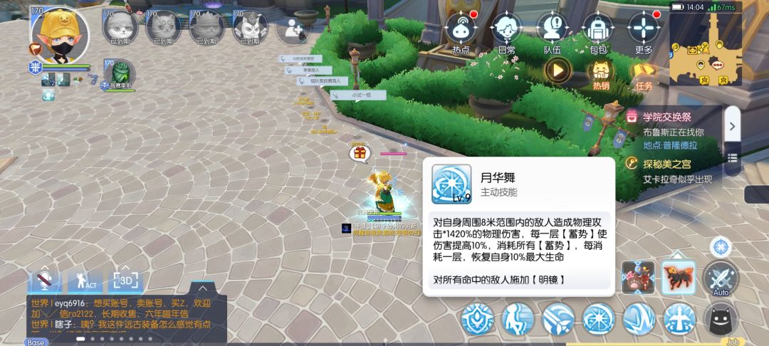 月华舞是唯一站场平a时会用的技能,目前蓄满打每下10M左右(木桩),对boss200k左右,吃属性石280左右。很废。