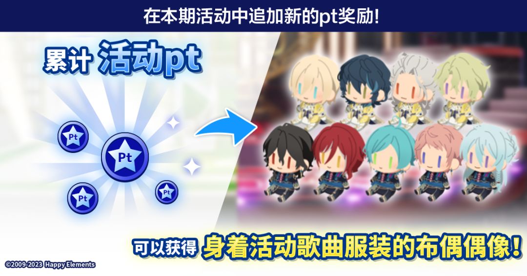在活动中收集pt可获得身着活动歌曲服装的布偶偶像!