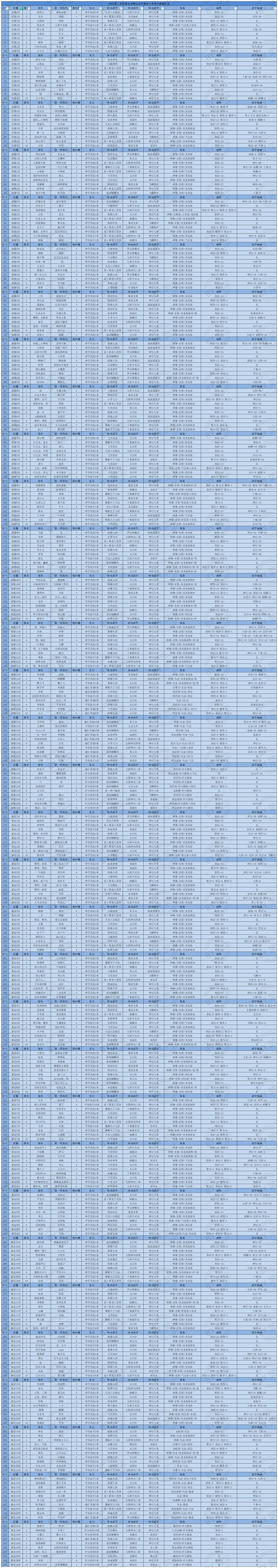 2023三季度官服、混服、暴服前十330名玩家武学搭配汇总