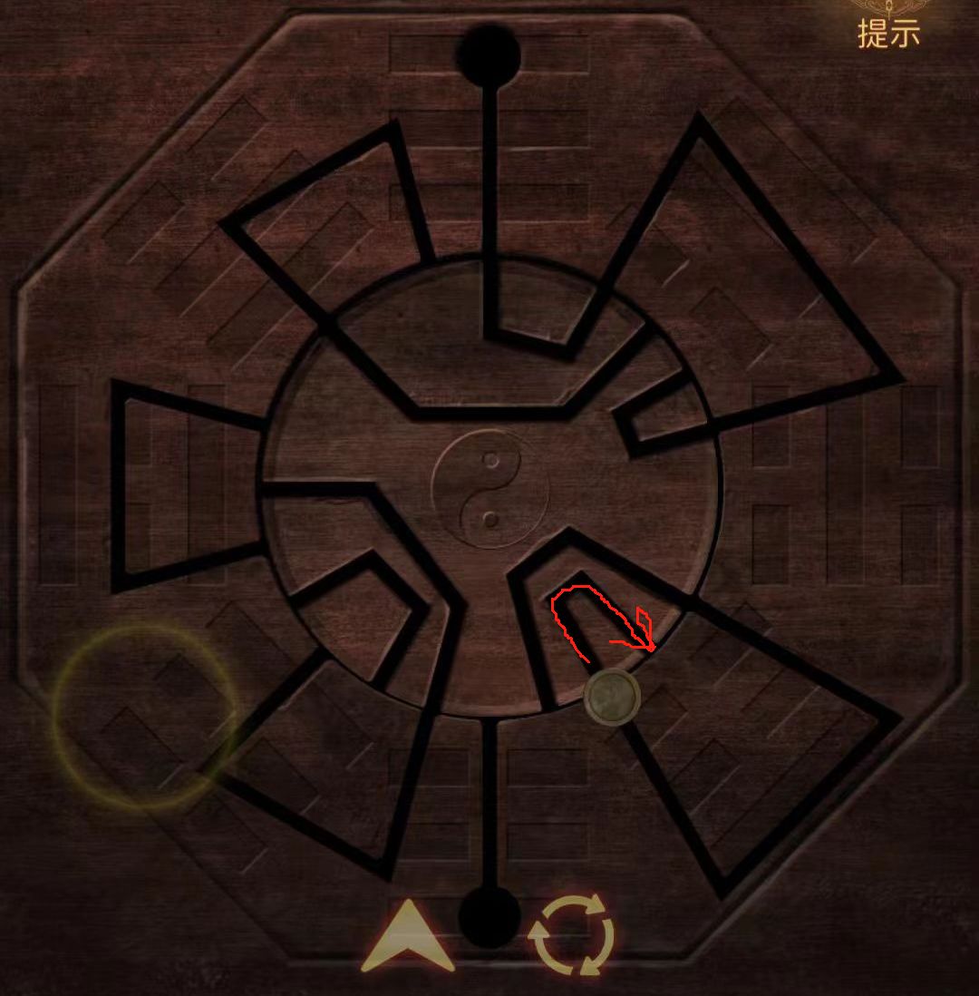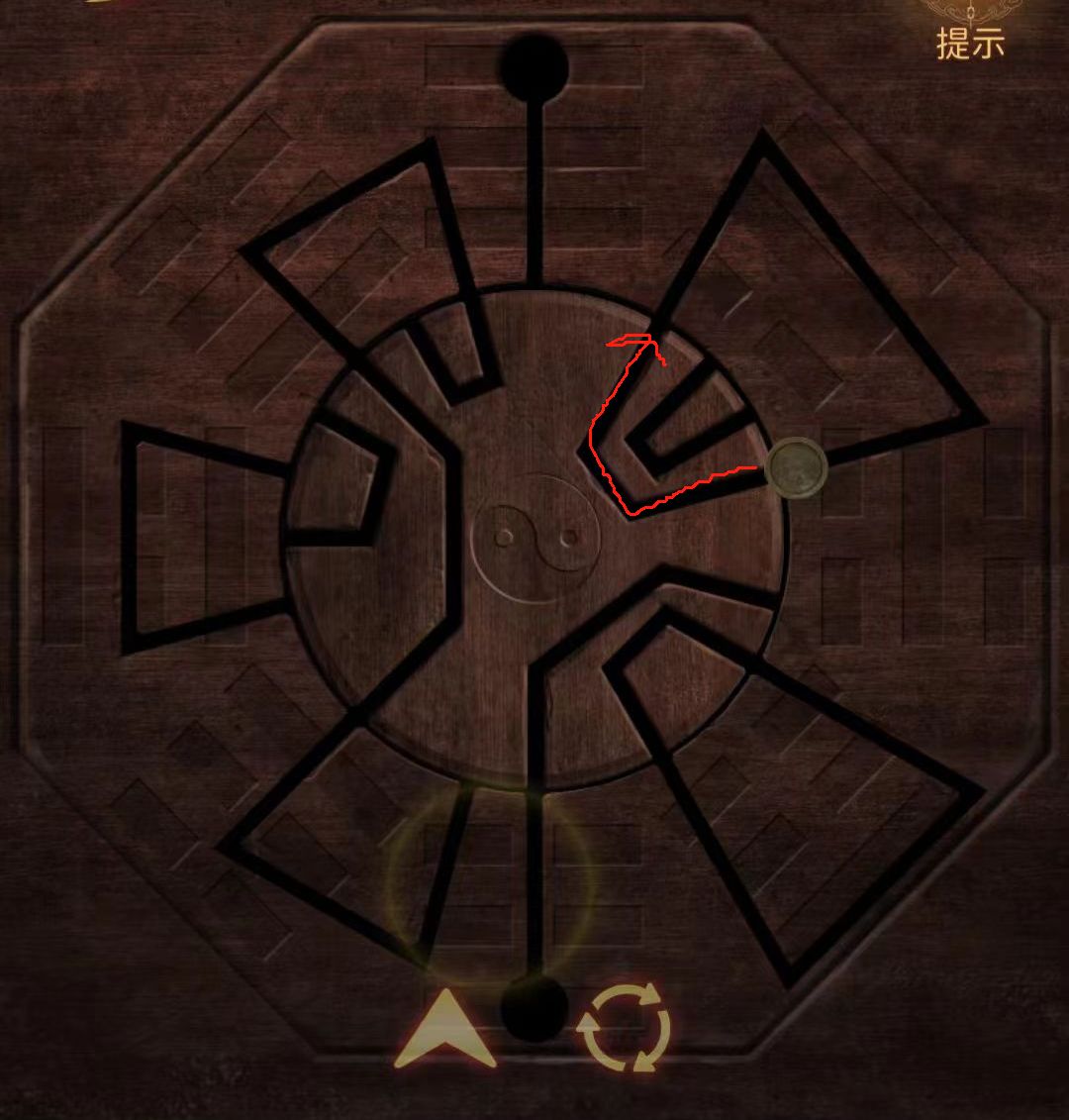 因为是蝴蝶铜币,蝴蝶=梦境,所以用乩笔按照上文梦境(庄周梦蝶):→↓←↑←↑的顺序点击