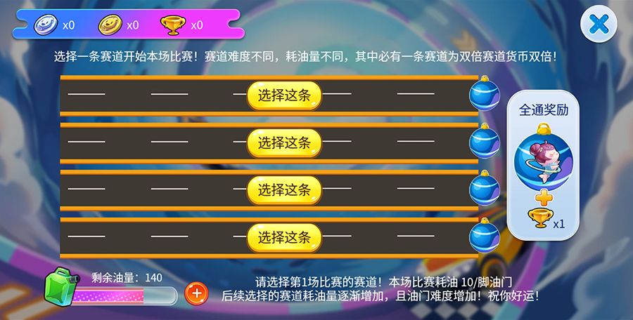 在赛场上选择一条赛道,开始体验急速飞驰~