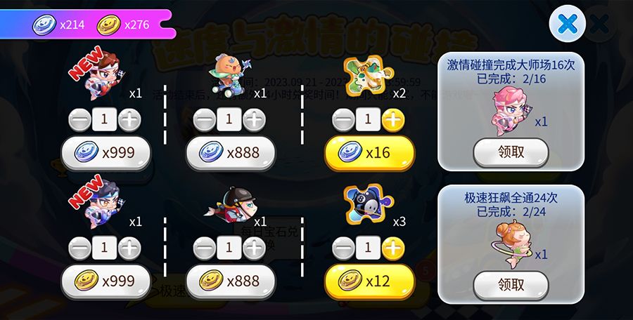 每天进入活动会赠送体力,进入图示中左下方的环节:极速狂飙。