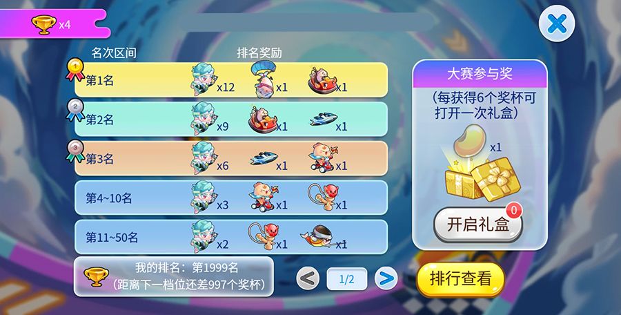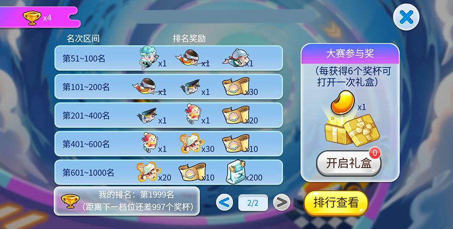 在大师排名环节,会根据大家获得的奖杯数进行排名,活动结束后领取对应名次的福利~