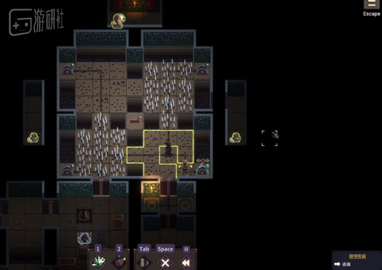 比如我在偷取一名携带门钥匙的看守时,不小心引起了他的注意,于是下个回合他便脱离原定路线开始追我,这时候我可以选择穿过那扇需要钥匙才能通过的门,这样他便会因为钥匙被偷而被挡在房间外,也可以控制另一名同伴触发房间的机关,让地刺解决掉守卫。