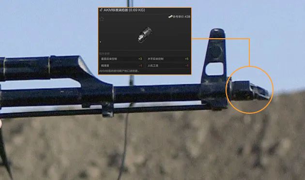 此外,早期的AKM使用与AK类似的枪口,不过很快就换成了一款斜切口形的枪口,以抑制枪口跳动和提高连发射击时的散布精度。这一独特的枪口造型同样是AKM一个很有辨识度的特征,游戏中的AKM标准消焰器就是对其的还原。