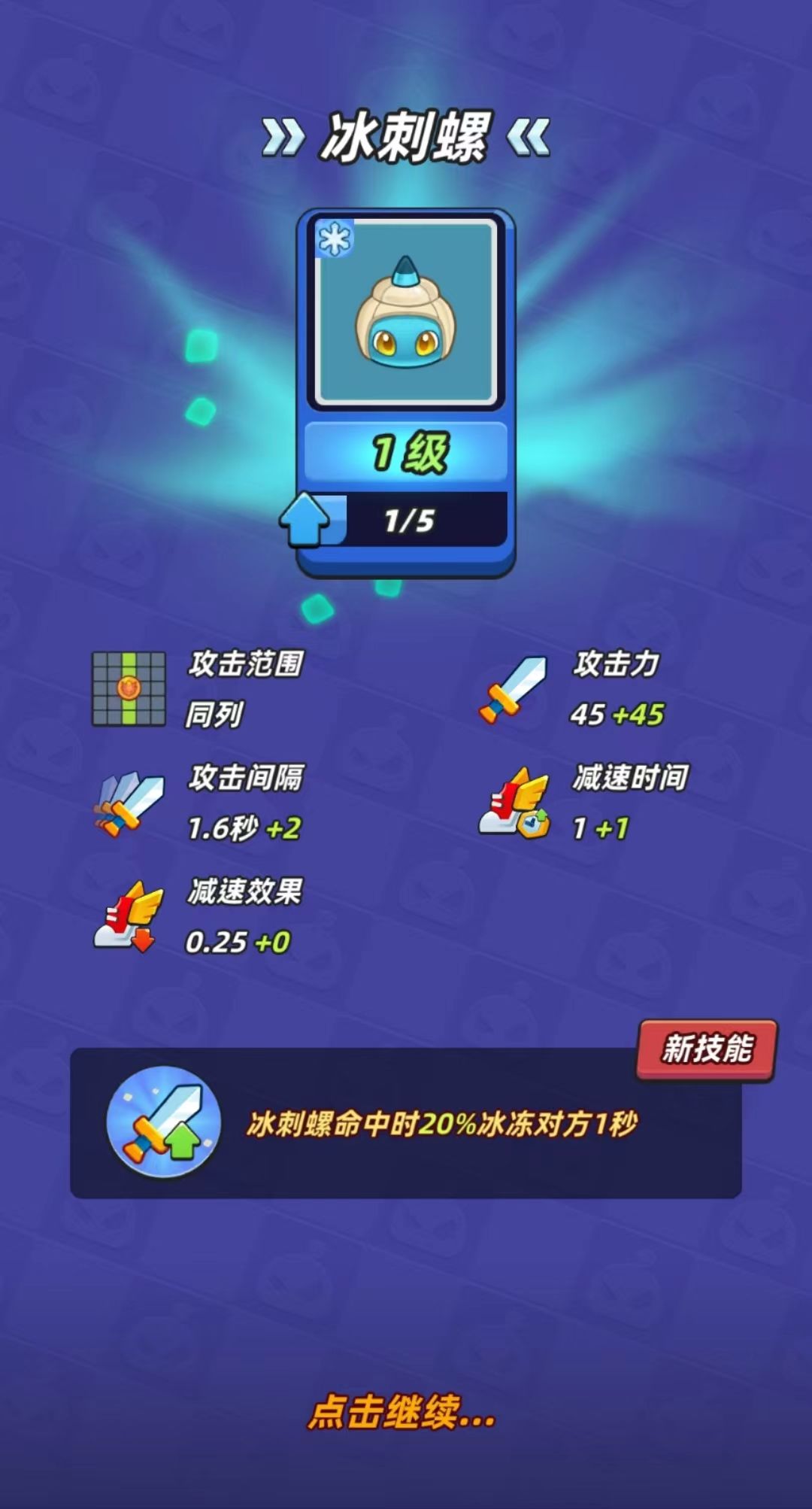 【7级】:冰刺螺冰冻敌人时,周围半格的敌人减速1秒