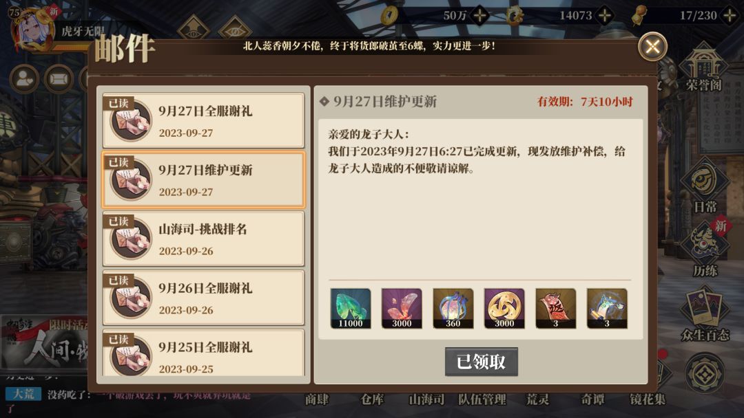 7、只有周日能刷中间和的灵器,所以一定要留体力哦,相当于一年一次的双十一。