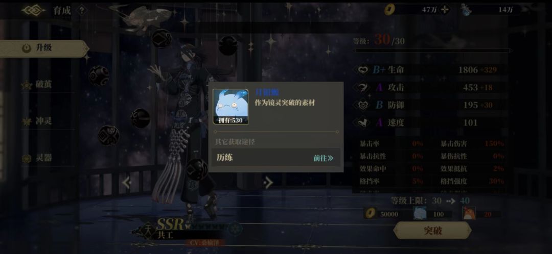 这个人物60级往上特别缺除非不刷核全刷突破材料