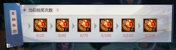 仙术师每次寻龙都会累计1点抽奖次数,达到对应次数后可领取累抽奖励,最高可得45枚。