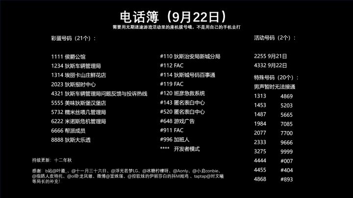 无期迷途异想声讯电话簿(9月22日更新至43个)