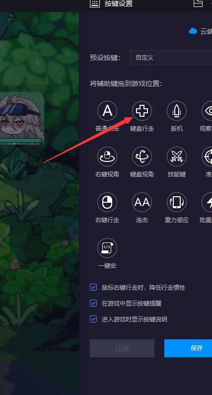 2.将【键盘行走】拖到左边摇杆图标处