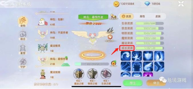 影响宠物评分的主要有2项:资质和技能,其中资质中又以成长资质影响最大