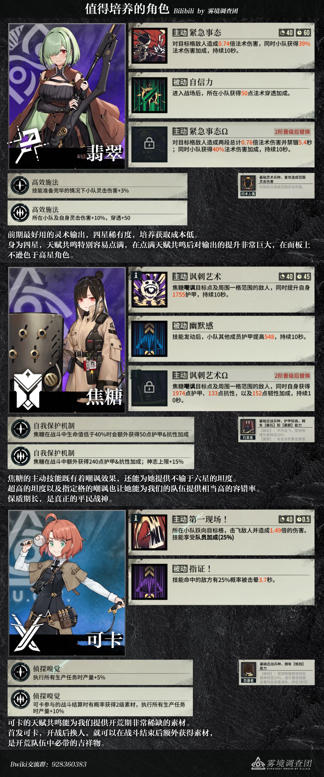 以下是我们实测后推荐的一些角色,他们各有特点,可以根据自己的喜好和需求来选择培养。