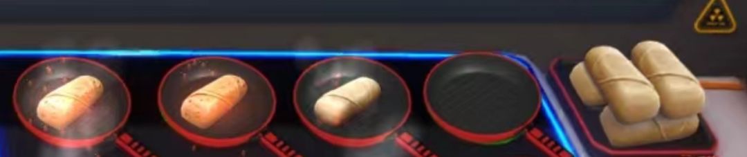 在游戏中只需要我们点击食材,放在煎锅中,将菜品烤熟即可放置到配菜的桌面上。别忘了升级你的餐具,加快制作速度哦。