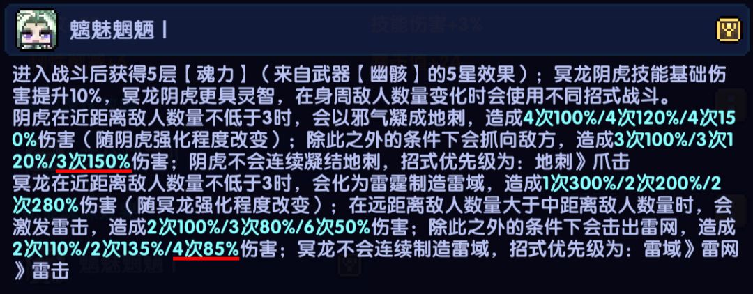 由魂珠描述可知,在不同场景下冥龙阴虎会有不同的攻击模式及倍率